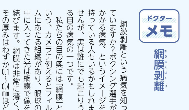 網膜剥離は早期発見と早期治療がとても大切な病気です。ご興味をお持ちの方はご一読下さい。